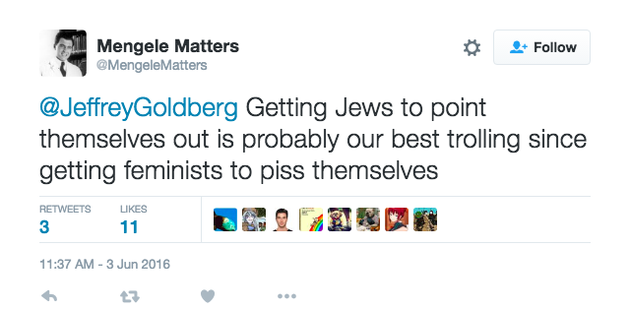 Many of these trolls will adopt Jewish-seeming names as their Twitter handles. They find this amusing.