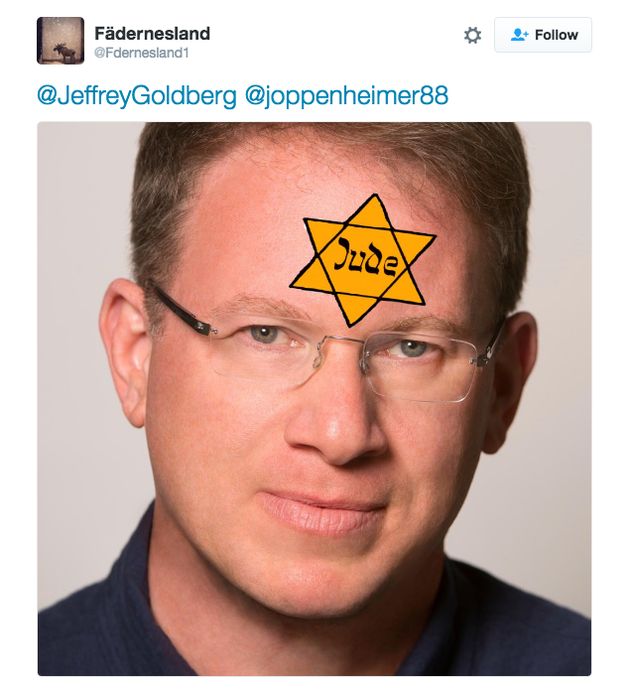 On the other hand, I don’t want to mitigate the damage done by the far-right. I’ve met people who are traumatized by the explosion of on-line anti-Semitism, as well as physical-world anti-Semitism—for instance, the young woman I met last night at the Sixth and I Synagogue in downtown Washington who told me that a man in a Trump hat called her a “kike” on the Metro—and so monitoring this phenomenon seems like a worthwhile endeavor. (The Anti-Defamation League will be doing just that.) In the interest of cataloguing a portion of the invective directed my way, (other journalists, including Julia Ioffe and Jonathan Weisman, have reported on their personal Nazi trolls) you will find below a partial listing of what I’ve seen in just the past couple of weeks. A number of quick observations, though, before we begin: