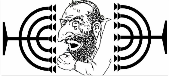 This was a very common illustration directed my way (and in other directions as well). The message was that we should return the ((())) to the Nazis and use menorahs instead.