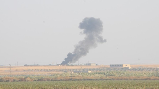 Smoke rises from the Syrian side of the border, as pictured from the Turkish town of Akcakale. (DEMIROREN NEWS AGENCY / REUTERS)