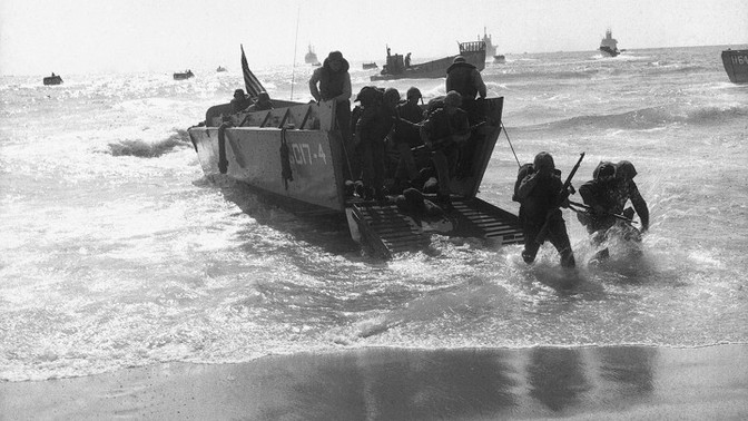 Marines arriving on a beach outside Beirut, Lebanon, on July 15, 1958 (BETTMANN / GETTY)