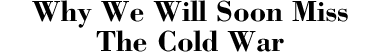 Peace: it's wonderful. I like it as much as the next man, and have no wish to be willfully gloomy at a moment when optimism about the future shape of the world abounds. Nevertheless my thesis in this essay is that we are likely soon to regret the passing of the Cold War.