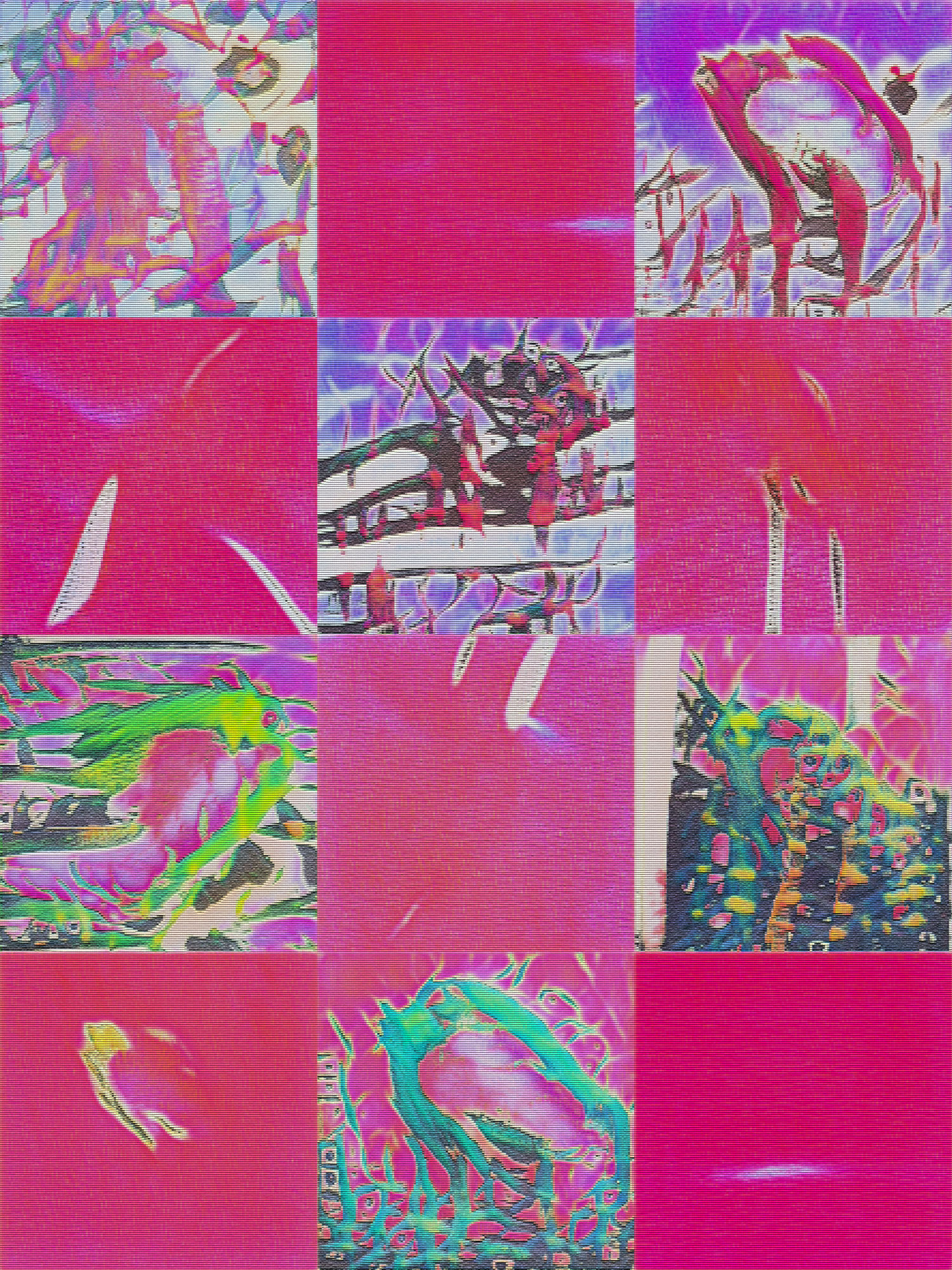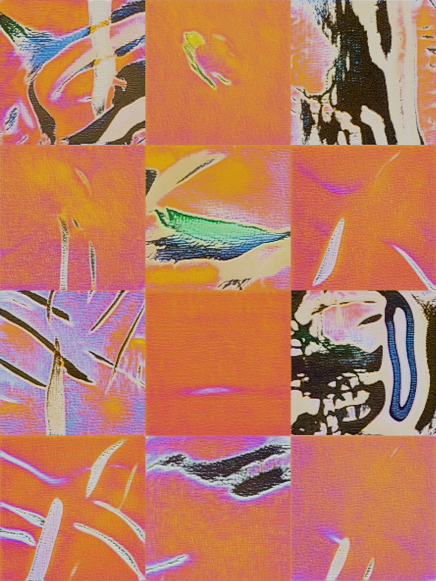 Developed over three years, this collection emerged from experiments with generative adversarial networks (GANs) to create cinematic media. Each piece marries Reas’s visuals with Werner’s musical compositions. Werner uses granular synthesis, a sound technique whereby tiny fragments of a sample (grains) are arranged and modulated freely. Together they create a blend that respects traditional film elements while introducing a fresh cinematic expression.