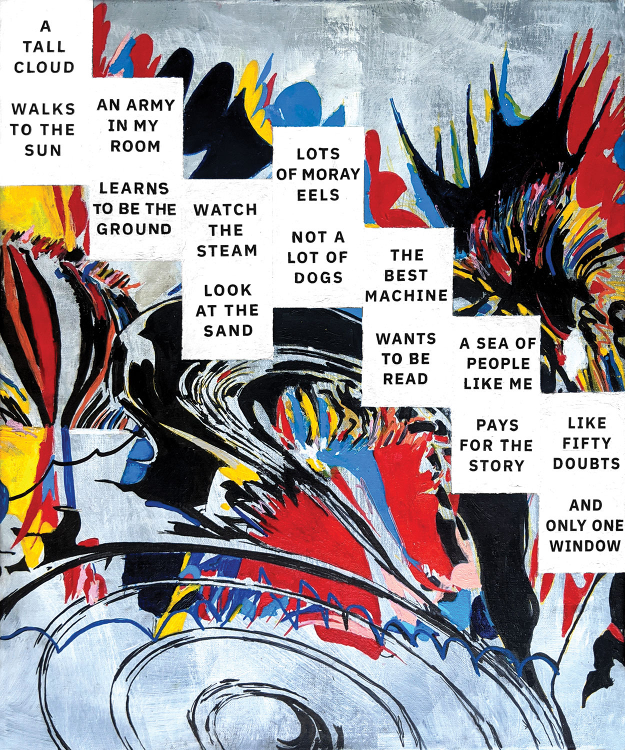 From the AI’s output, Buttin developed resonant sentences, transforming them into evocative poems. These poetic expressions subsequently inspired a series of paintings, each capturing the essence of the verses. The entire endeavor, from writing the autobiography to training the AI, took place between 2018 and 2021, before easy public access to AI tools. Below is a glimpse of the AI-generated content, which Buttin has deftly reimagined into poetic and visual art forms.