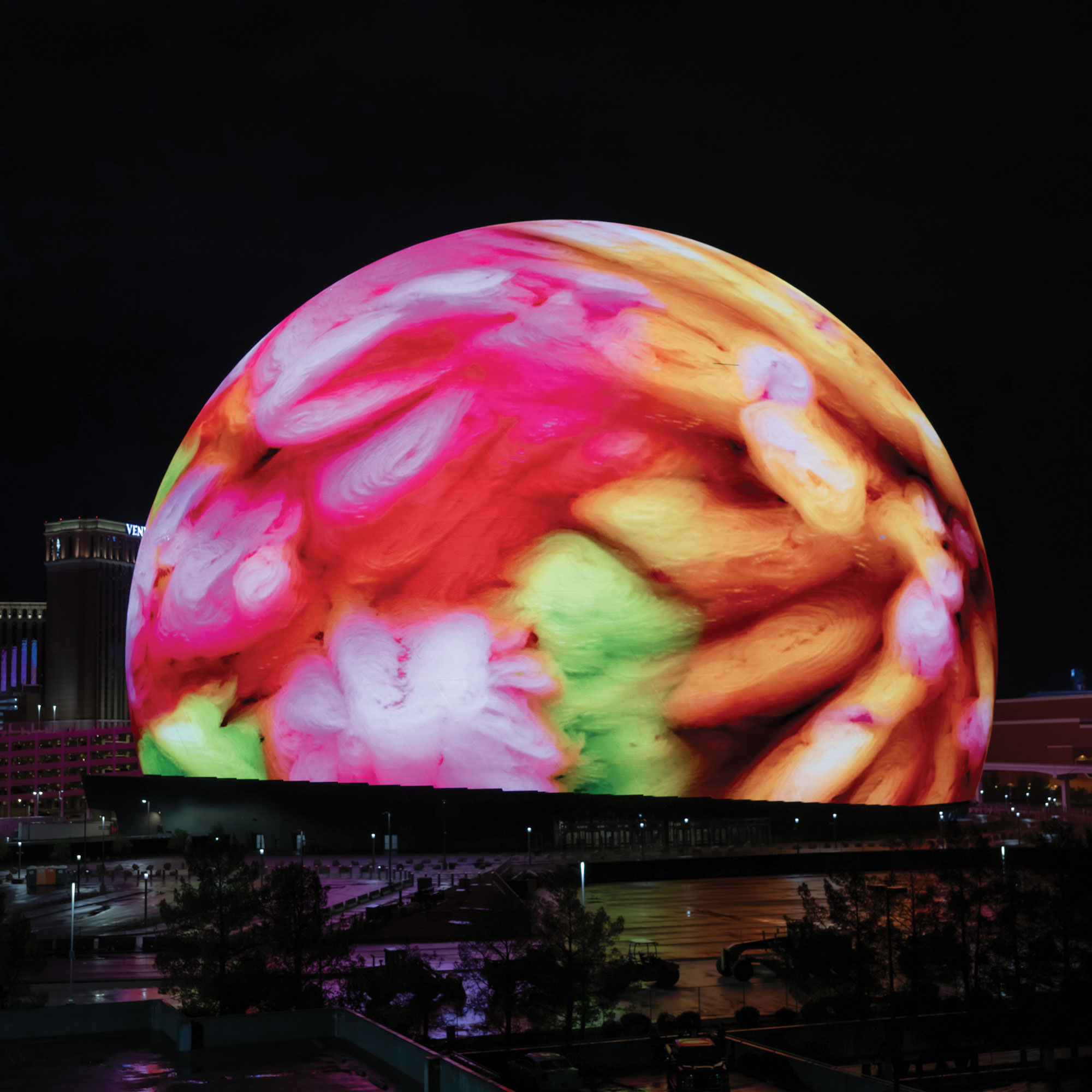 Anadol was also the first artist to use the fully programmable LED exterior of the Las Vegas Sphere, a new performing arts venue, by featuring dynamic visualizations of data to create abstract images of space and nature. The two-chapter series creates a collective, meditative, multisensory experience that takes audiences on a journey of light, movement, and color with vivid pigments, shapes, and patterns.