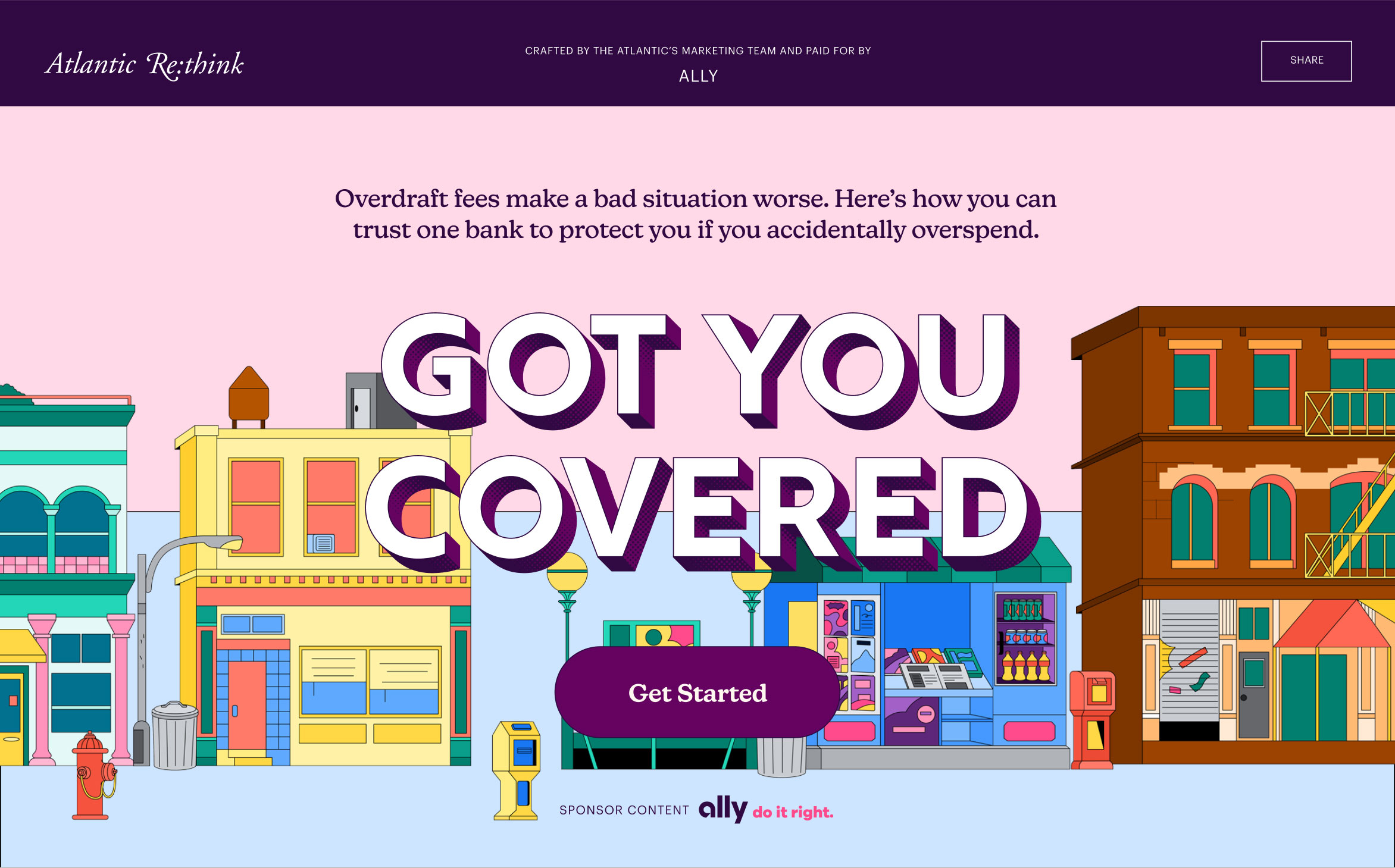 Got You Covered, a collaboration with Ally, addresses the pervasive issue of financial insecurity through an engaging, interactive visual story. Readers trace a day in the life of Alex, a composite character embodying the financial challenges confronting countless young Americans. Through an adventurous visual narrative, users navigate Alex’s day, encountering seemingly mundane situations that illuminate the difficulty of life on a tight budget—and the ever present threat of spending beyond one’s means.